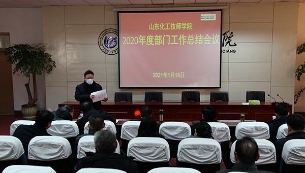 1月18日, 学院2020年度部门工作总结会议在学院路校区报告厅召开,学院领导孙晋东、王庆杰、苏军生、张继宏、崔世玉出席会议,中层及以上干部、教师代表参加了会议。组织人事处处长李登玉主持会议。