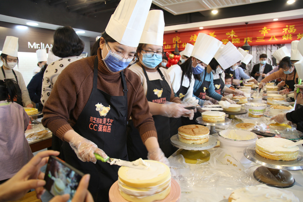 副院长张艳向全体女教职工致以节日问候和美好的祝福,衷心感谢大家对学院改革发展做出的贡献。活动现场,在专业蛋糕师的指导下 ,参加活动的女教职工认真学习制作流程,专心细致操作,材料准备、蛋胚摆放、奶油涂抹、造型装饰,一个个颇具匠心的蛋糕精心制作出来,得到蛋糕师的点赞,现场弥漫着“温暖、快乐、幸福”的浓香。面对这份特殊的节日礼物,大家充满成就感,非常开心快乐,感到度过了一个独具特色有意义的节日。大家一致表示,在今后的工作中将以更加饱满的热情和积极向上的心态投入到工作中,继续发挥“半边天”作用,为学院高质量发展贡献智慧和力量。
