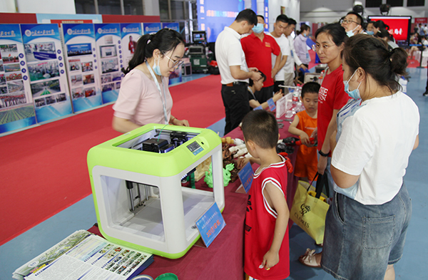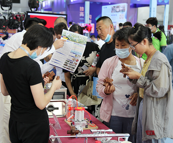 我院师生携带化工专业特色设备费斯托装置、超声波清洗仪、室内甲醛测定仪,学生实习实训作品口红、手工皂、原浆啤酒、智慧农业大棚、鲁班锁、多级泵模型、激光内雕作品、3D打印作品,水中花园、幸福一家等参加展会。经过精心布展,丰富的展品内容吸引了参会领导、家长和学生关注,他们驻足围观咨询专业设置和学制情况,参展教师就他们关心的学院办学情况、师资力量、特色专业、毕业生安置就业等问题进行了耐心细致解答。