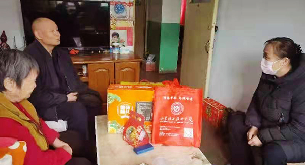 1月24日,虎年新春来临之际,学院领导孙晋东、王庆杰、苏军生、张艳、张继宏、崔世玉、苏友华在离退休工作处(工会办公室)、党政办公室、组织人事处、宣传部负责人的陪同下,分成四个慰问小组走访慰问了学院退休老领导、老教师、老职工,给老同志们送上了节日慰问品和新春美好祝福。