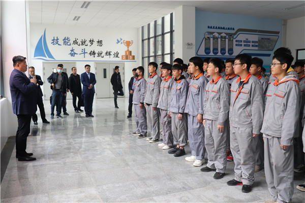 肖振一行参观了化工生产实训中心、机械工程实训中心、世界技能大赛中国集训基地;就县经济发展、引才政策、园区就业收入水平、个人发展前景等问题向学生进行详细介绍。