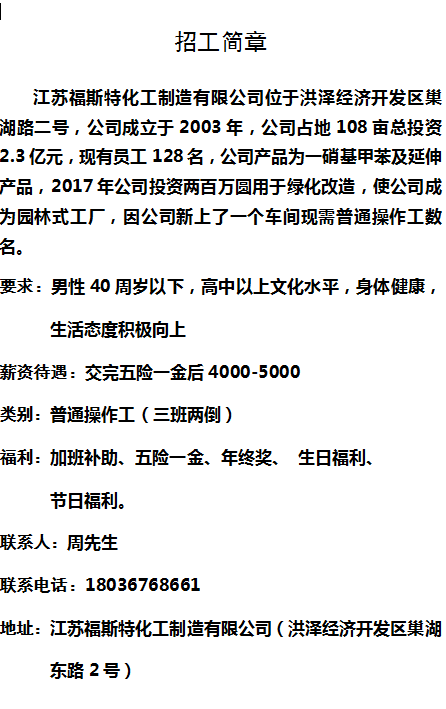江苏福斯特化工制造有限公司