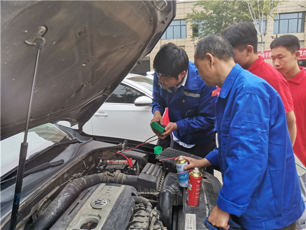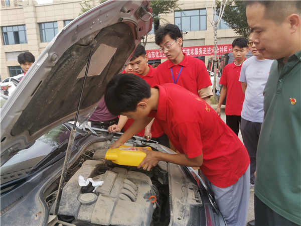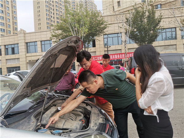 汽车工程系党支部教职工党员和学生团员携带汽车专业检测工具走进六合社区,并在社区广场设置车辆检修服务点,社区居民闻讯纷纷到服务点积极参与服务活动。此次活动服务内容涉及汽车维护与保养、汽车常识普及、汽车常见故障的排查与维修等。在活动现场党员和学生团员积极为社区广大居民朋友进行了胎压检测、机油检测、发动机检测、玻璃水添加等日常维护。