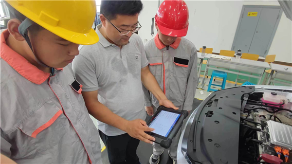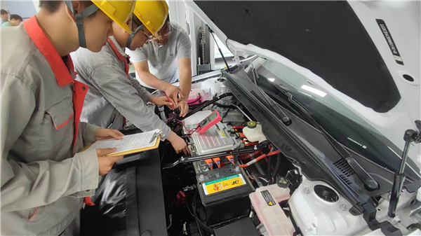 新能源汽车检测与维修专业课堂上,学生们围绕着一辆比亚迪秦EV展开了紧张而充实的教学实训。本课程以比亚迪秦EV为载体,通过实际操作和模拟故障排查,帮助学生掌握电动汽车控制系统的维修技巧。