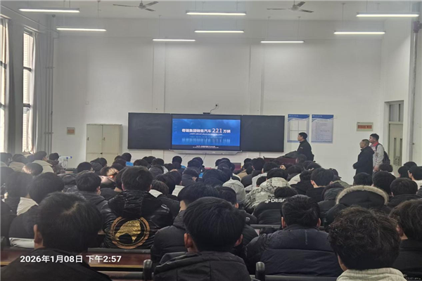 宣讲会上,奇瑞汽车集团代表以生动详实的案例和图文并茂的展示,系统讲解了企业发展史、企业文化及生产工艺等核心内容。从创业起步到成长为全球化汽车企业的发展脉络中,奇瑞的创新坚守与责任担当深深打动了在场学生;在企业文化分享环节,代表重点阐释了企业核心价值观与精神内核,让学生深刻理解了企业发展的文化底蕴。同时,代表着重强调了企业对技术技能人才的核心要求,明确表示具备扎实专业技能的优秀学子,未来有机会进入企业研发中心等重要岗位就业,为学生的职业发展指明了清晰方向。