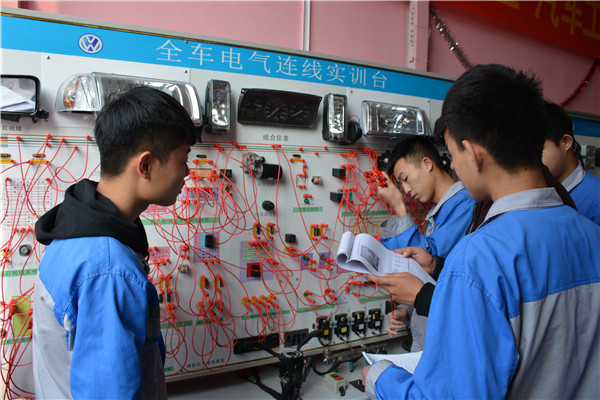 学生操作全车电路连线