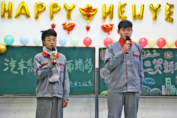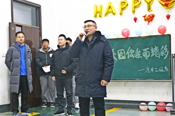 12月31日晚,由我系举办的“辞旧迎新,青春辉煌”元旦晚会在实训楼119精彩上演。汽车系马主任、孔主任等领导老师出席晚会,与同学们欢聚一堂,共度良宵。晚会在晚上6:40准时开始,马主任首先致辞,带着对新的一年美好期盼,对参加本次晚会的全体师生表示热烈的欢迎和由衷的祝福。
