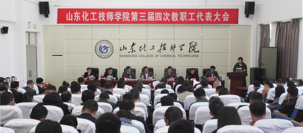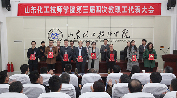 王庆杰在学院工作报告中指出,在省人社厅的关心支持和正确领导下,全院教职工以习近平新时代中国特色社会主义思想为指导,认真贯彻落实十九大精神,积极对接新旧动能转换重大工程,抢抓发展机遇,各项工作成绩显著。一是新校区顺利启用,办学条件得到很大改善,有两个二级学院的3000名学生平稳入驻新校区。二是办学规模持续扩大,社会化培训成效显著,2018年完成了3000人的招生任务,面向企业、社会开展职业技能培训、技能鉴定人数达到3199人,金蓝领技师培训达到305人。三是加强高端技能人才培养,技能大赛成绩实现新突破;在省级及以上技能竞赛中共获奖项62项,特别是参加第45届世界技能大赛化学实验室技术项目全国化工行业选拔赛、山东省选拔赛的两名同学都获得第一名,并在全国选拔赛中获得优异成绩。四是成功申办特色名校,国际合作办学取得实质性进展;2018年我院顺利通过山东省技工教育特色名校评审,学院与德国莱茵科斯特有限公司签订了“中德智能制造技能人才双元培养”合作协议,选拔组建两个班级按德国双元制教学模式组织教学。五是院系二级管理水平进一步提升,全方位育人取得成效。六是精神文明成果得到巩固,学院顺利通过2018年度省级文明单位复查,再次获评“中国石油和化学工业院校文化建设先进单位”;平安校园建设成效显著,安全管理规章制度体系初步建立。七是服务意识不断增强,后勤保障水平有了新提升。八是廉政风险防控进一步增强,依法依规办学成效明显。