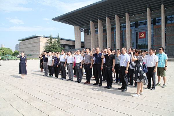 为进一步激励党员干部不忘初心,牢记使命,继承和弘扬“红船精神”,推进学院高质量发展,7月28日下午,我院党委理论学习中心组成员在党委书记孙晋东的带领下前往南湖革命纪念馆,进行了一场别开生面的现场教学活动——瞻仰革命圣地,追溯红色记忆,重温入党誓词。学院党委副书记、院长王庆杰,党委委员张艳、张继宏、崔世玉,全体中层正职以上干部参加学习活动。