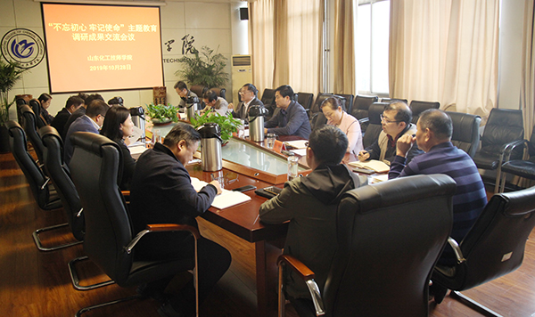 党委书记孙晋东在讲话中指出,“不忘初心、牢记使命”主题教育活动开展以来,学校领导班子围绕深入学习习近平新时代中国特色社会主义思想,认真落实主题教育有关工作安排,结合学院中心工作和亟待解决的问题,精选调研主题,深入一线,与师生面对面座谈、交流,发放调查问卷,听取意见建议,广泛开展调查研究,形成了调研成果报告,既深入分析问题,又提出了解决问题的思路、对策,推动了主题教育向纵深开展。下一步,要依据调研报告,实现成果转化,孙晋东提出两点要求,一是班子成员要做好相关工作问题的指导、督促、改进;二是各职能部门要抓好推进落实,扎实进行问题整改,推动调研成果运用推广,确保主题教育取得实效。