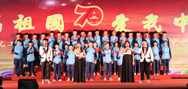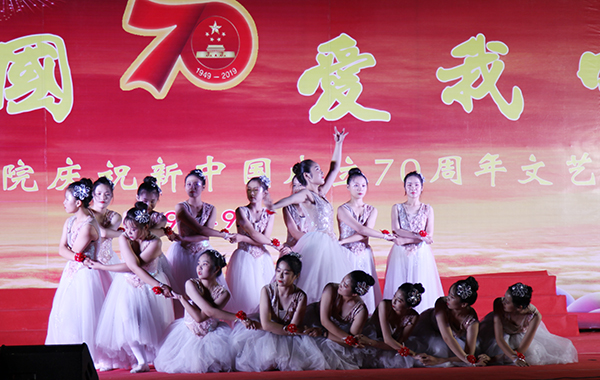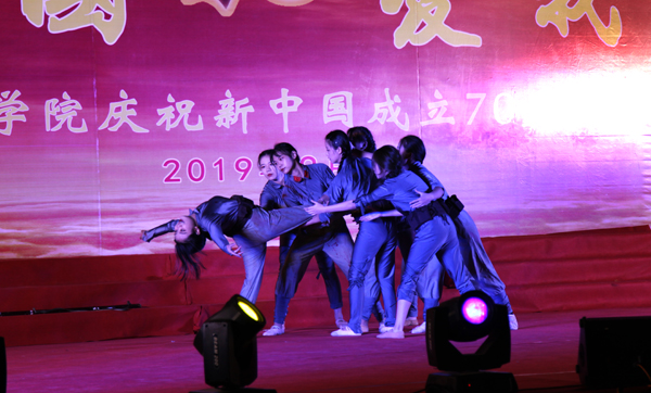 演出紧紧围绕“我和我的祖国”,讲好中国故事,讲好中国共产党的故事,讲好新时代中国特色社会主义故事,鼓舞人心、催人奋进,在教工合唱团“为你祝福,为你贺岁,我的母亲,祖国万岁”的歌声中拉开帷幕,舞蹈《我们是祖国的花朵》《八女投江》《一条大河》《映山红》《我爱你,中国》,诗朗诵《祖国颂》《70周年赞歌》《祖国,你就是我要唱的那首歌》,合唱《国家》《强军赞歌》《精忠报国》《强国一代有我在》《我和我的祖国》《歌唱祖国》《绒花》等精选各类国家在革命、建设、改革等历史阶段题材的文艺作品,经过各院系师生的创意编排,你方唱罢,我登场,展现了学院师生爱党爱国爱校的情怀和拼搏进取、昂扬向上的精神风貌,放飞青春梦想,为新中国成立70周年送上诚挚祝福,给全体师生送上了一场异彩纷呈的视听盛宴。