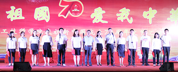 9月28日-29日,学院在学院路校区和高铁新区校区分别举行庆祝中华人民共和国成立70周年文艺晚会,参演师生用激昂的歌声,澎湃的激情,深情礼赞新中国。学院领导孙晋东、王庆杰、苏军生、张艳、张继宏、崔世玉,全体师生一同观看了演出。