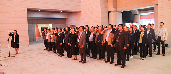 “我志愿加入中国共产党,拥护党的纲领,遵守党的章程……”,在胜利大厅,全体党员面向党旗,举起右手,重温了入党誓词。
