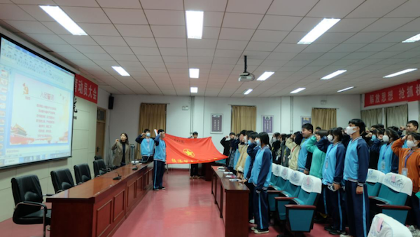在团课之初,由王子同学带领全体参会团员重温入团誓词。