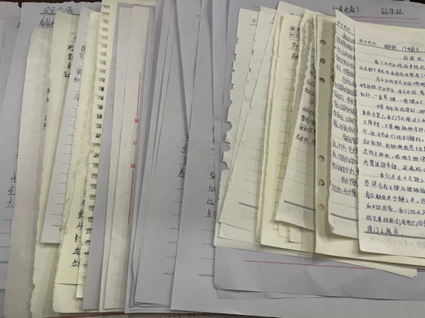 团课过后,同学们都积极地书写了自己的观后感,抒发爱国之情。