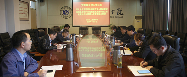 11月5日,党委书记孙晋东在学院路校区主持召开党委理论中心组会议,专题学习研讨深入学习习近平总书记在深入推动黄河流域生态保护和高质量发展座谈会上的重要讲话精神和视察山东重要指示要求。党委副书记、院长王庆杰,党委副书记苏军生,党委委员、副院长张艳、张继宏,党委委员、纪委书记苏友华参加学习,理论学习中心组学习秘书朱景洋、段亚锋、徐廷国列席会议。