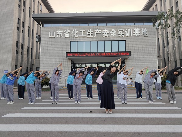 德育工作处处长许芝平老师亲自带队,德育处郝洪莉老师协助配合。训练第一天给大家站姿、走姿讲解和示范,并教给了大家体态如何变得更美的动作。在与学生互动的过程中,许处长自称“许妈妈”把十二分的热情传递给了同学们,让大家在轻松愉快的氛围中得到了体态训练。在之后的训练过程中,许处长和德育处郝洪莉老师不仅陪同学们一起做体态提升动作训练,而且耐心引导同学们学会如何更美地展示自己的笑容,提高自信。