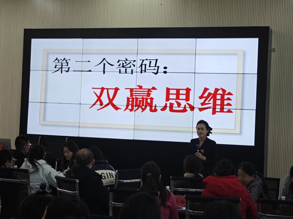 11月17日,我院德育处处长许芝平教授应邀在青岛市技师学院承办的通用职业素质与文化课中心教研组2023年教研会上,给来自全省各技工院校的教师代表们上了一堂精彩绝伦的通用职业素质教师体验式培训课,促进了各院校间的通用职业素质与文化课教育的学习和交流,得到了大家的一致好评。