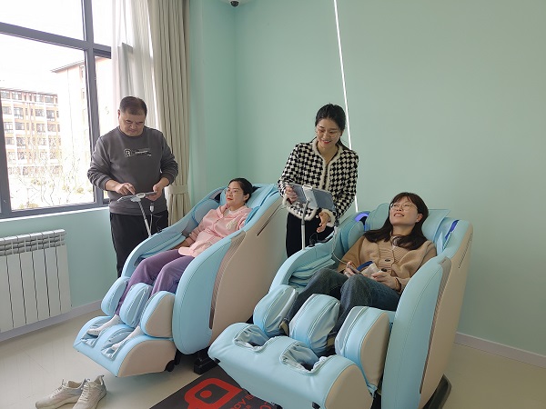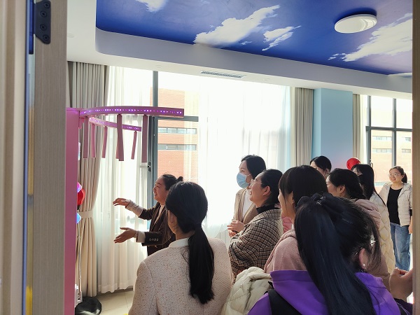 活动现场,教师们参观了个体心理咨询室、团体活动室、运动放松室、心理沙盘室、心理测评室、心理档案室、音乐放松室和沉浸式放松室、心灵驿站、中医理疗室等功能室,李传楠老师就各区域的功能为大家作详细介绍,德育工作处副处长孟庆田认真指导老师们体验相关心理设备,现场气氛热情愉悦。
