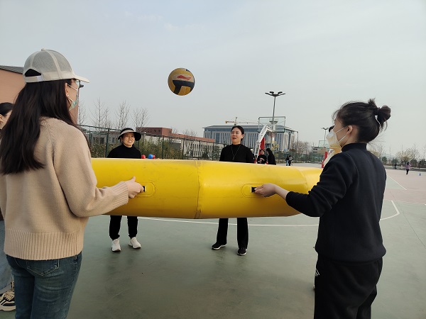 通过“同舟共济”、“鼓动人心”等素质拓展活动,体验团队协作的重要性。公共教学部副主任侯成凯主持活动,体育教研室的老师们担任裁判,其他教师配合做好活动开展以及后勤服务等工作。