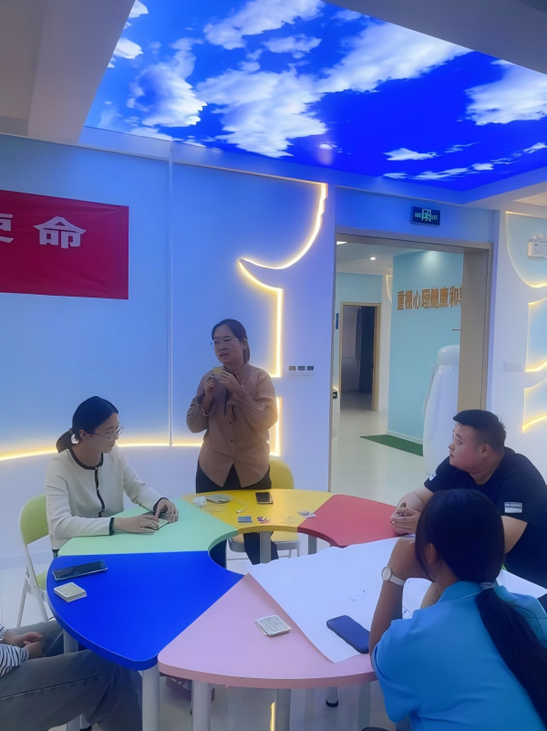 活动现场,陶玲老师以其高超的授课水平,带领教职工们进行了心理OH卡实操,帮助大家探索深层信念,获得自我成长。同时,针对教师心理解压与情绪管理、与叛逆期青少年沟通技巧等内容,陶玲老师通过互动游戏的方式,让教职工们在轻松愉快的氛围中学习和体验。现场气氛热烈,教职工们积极参与,纷纷表示收获颇丰。