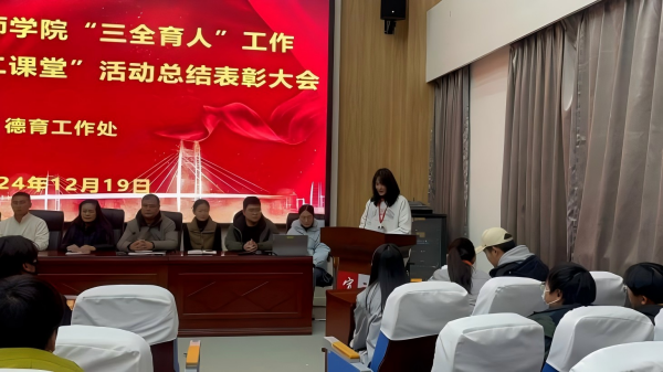 为深入贯彻“三全育人”教育理念,总结并表彰本年度“第二课堂”活动的优秀成果,德育工作处于2024年12月19日在学院工艺楼A323报告厅成功召开了“三全育人”工作推进会暨“第二课堂”活动总结表彰大会。