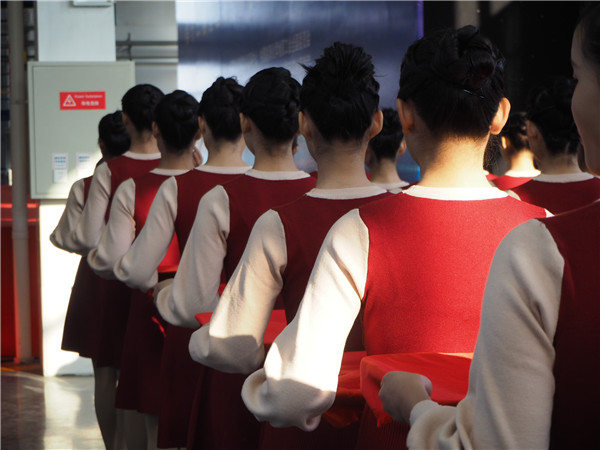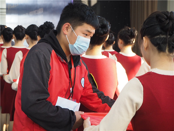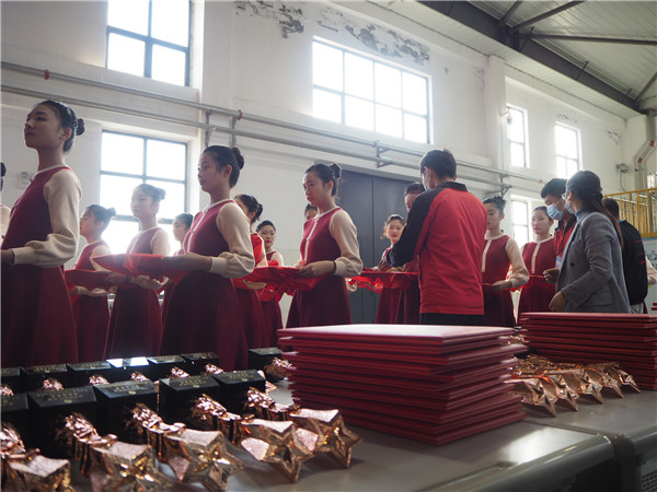 本次国赛颁奖典礼的礼仪人员是在德育工作处统一组织协调下,由校礼仪社选派,进行了为期三天的集中训练。本次颁奖任务重,时间短,同学们克服了寒风、日晒、身体不适等重重困难,牺牲了自己的课余休息时间,加班加点的训练,希望将最美的姿态和笑容展现出来。她们不怕苦不喊累,共同合作,锐意进取,充分的展现出我校学生志愿者的风采。最终收获了各位领导和广大参赛队伍的一致好评。
