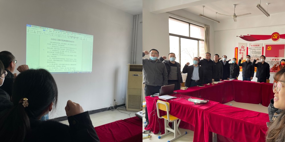 会上由朱静山老师领学教学违纪与教学事故认定及处理办法;黄亭亭老师领学山东化工技师学院教学检查管理办法《试行》 ;张振老师领学新时代高校教师职业行为十项准则;程浩老师领学关于印发《关于进一步加强学生安全管理的办法(试行)》的通知。接着杨建平主任对严师德塑师风培训进行了总结提升,对全体教师提出了几点要求和期望。