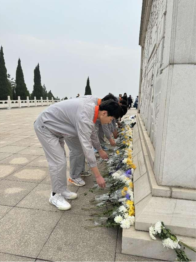 在纪念碑前,参与活动师生肃立默哀,缅怀抗战英烈。随后,德育工作处许芝平处长给师生讲述革命故事。并向广大师生提出要求,我们不仅要缅怀那些为了国家和人民利益英勇献身的先烈们,更要了解历史,铭记历史,自觉接受红色教育,传承红色基因,增强爱国情怀。 同时对学生们提出了殷切希望,作为新时代的学生要学习先烈们坚定的信仰、无畏的精神和崇高的品质,并将其转化为激励自身奋发向前的强大动力;要继承先烈的遗志,用以爱国主义为核心的民族精神,以改革创新为核心的时代精神,学习知识,磨砺技能,以技能成才为己任,将个人的成长与国家的发展紧密结合起来。