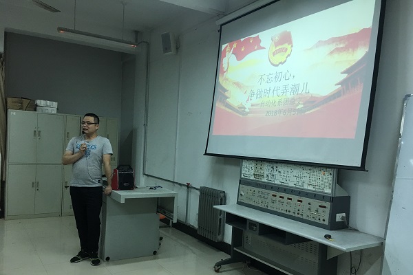 2018年6月6日晚自习,我系团委在实训楼426召开“不忘初心,争做时代弄潮儿”为主题的团课。自动化系团总支书记刘伟杰老师主持会议,系团委全体成员、各班团支部书记、优秀团员、新团员等共计20余人参加了本次学习。
