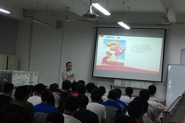 系团委书记刘老师作为本次团课主持人为同学们宣讲了“三会两制一课”方面的相关知识。他讲到,当代青年大有可为,不仅要增强大局意识和使命意识,更要敢想,在实践创新上下功夫,在学习工作中增强创新思维,真正做到学用相长,切实将理论知识转化为推进工作的强大动力。当代青年要有不安于现状,不甘于平庸,不囿于陈规,不屑于碌碌无为,而是以敢吃螃蟹的精神,勇于创新,敢于超越。当代青年要坚定信念,把自己的个人理想同实现“中国梦”的伟大实践有机的结合起来,并细化到个人的“生活梦”和“工作梦”中,在实现个人价值的同时体现自己的社会价值,唱响属于自己的青春之歌。要认真学习总书记重要讲话精神,铭记历史赋予青年的责任,胸怀民族复兴的梦想,坚持真理,脚踏实地、努力工作,不断进取、不懈奋斗,为实现伟大的中国梦贡献青春、智慧和力量。