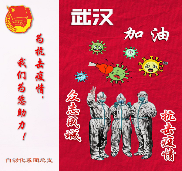 自动化系团总支根据学院团委安排,决定开展“为抗击疫情,我们为您助力”线上主题团日活动,希望用我们的暖心祝福为在抗疫一线奋战的医护人员、全体武汉同胞献上微薄的力量。希望大家都能同舟共济、共渡难关。本次团日活动主要从以下几个方面进行: