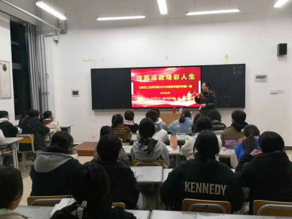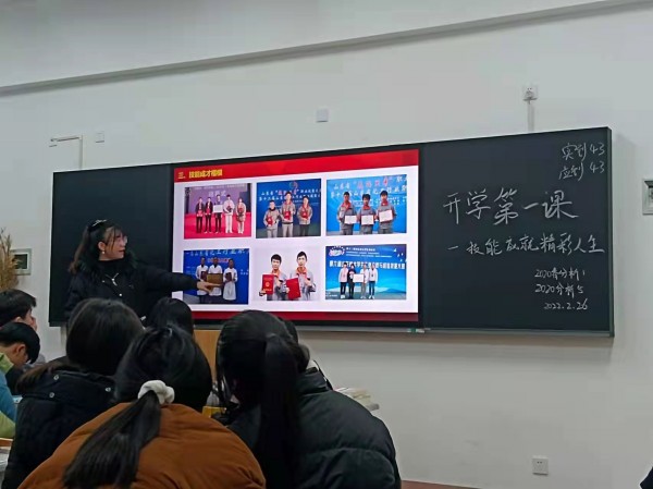 为了引导新时代青年师生增强技能成才的信心和技能报国的决心,潜心钻研技能、勇攀技能高峰,争当新时代大国工匠,按照学院要求,2月26日晚自习,工业分析与检测系各个班级在班主任的带领下一起学习了开学第一课——《技能成就精彩人生》,完成了做好学生技能报国教育工作的第一步。课件主要包括职业教育优势政策、职业技能竞赛、 技能成才楷模、技能学习建议四个方面的内容。