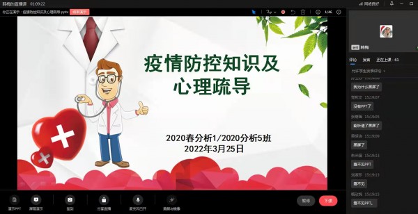 做好封闭管理师生工作。针对疫情形势的不明朗和校内校外专班不同管理的现状,系部组织各班主任参加学院组织的“同心抗疫,静待花开-心理健康知识讲座”,引导教师进行自我调适,引导学生化解负面情绪,用工业分析与检测系师生良好的精神面貌,更好的完成封闭管理时校内的各项工作。
