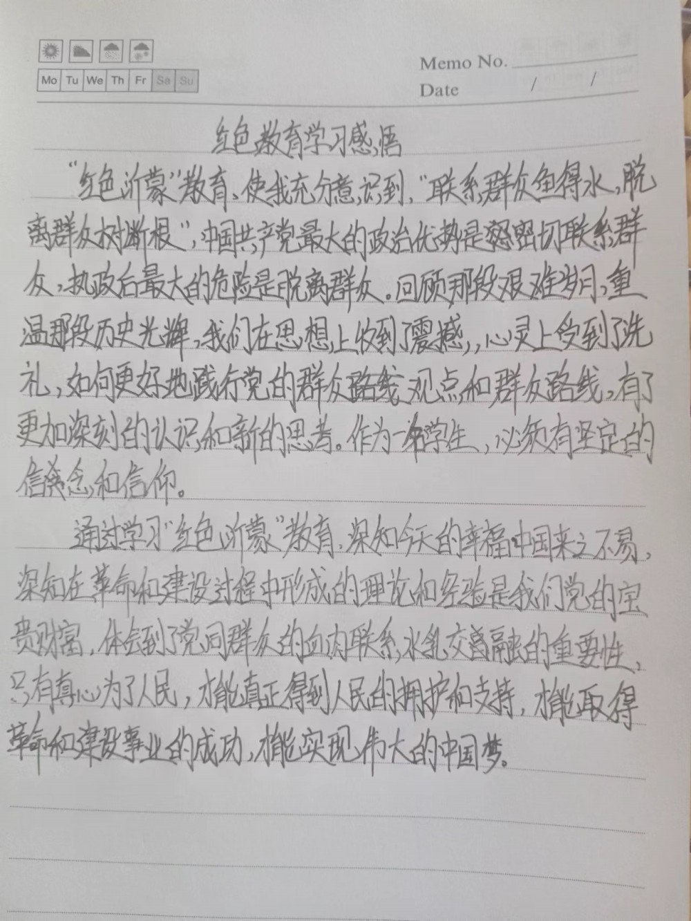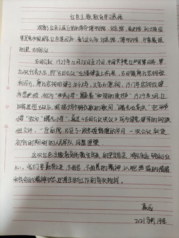 本次学习活动的开展,使同学们深刻感受到老一辈革命家的奋斗历史和光荣传统,进一步激发大家的责任感和使命感,激励他们传承好红色传统、红色精神、红色基因,让我们伟大的党永葆生机与活力。