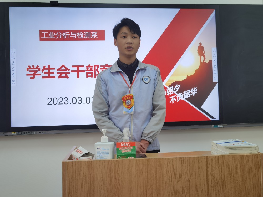 为进一步加强我系学生会干部队伍建设,发挥学生特长,选拔出一批敢担当有责任、全心全意为师生服务的优秀学生干部,构架师生间心灵的纽带,沟通的桥梁,让他们真正成为教育教学、学生管理的得力助手,3月3日,我系于分析楼A125进行了2023年度学生会干部竞选活动。工业分析与检测系主任杨明明、工业分析与检测系党支部书记周可、工业分析与检测系团总支书记李华健、学生会指导老师王岩作为评委参加活动并给予指导。
