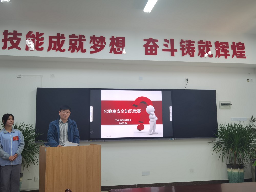 4月19日下午,初赛选出的22支代表队于分析楼A323集合,参加化验室安全知识竞赛的决赛,工业分析与检测系党支部书记周可、主任杨明明、副主任白磊磊及各班级班主任均到场参加活动,为参赛同学加油鼓劲。