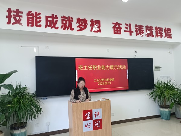 第四届山东化工技师学院班主任职业能力大赛开赛在即,为充分做好参赛准备工作,调动参赛人员积极性,进一步提升我系班主任职业能力,展示系部的良好形象和教育成效。8月29日下午,工业分析与检测系组织开展班主任职业能力大赛赛前成果展示活动。本次活动由工业分析与检测系副主任白磊磊主持。
