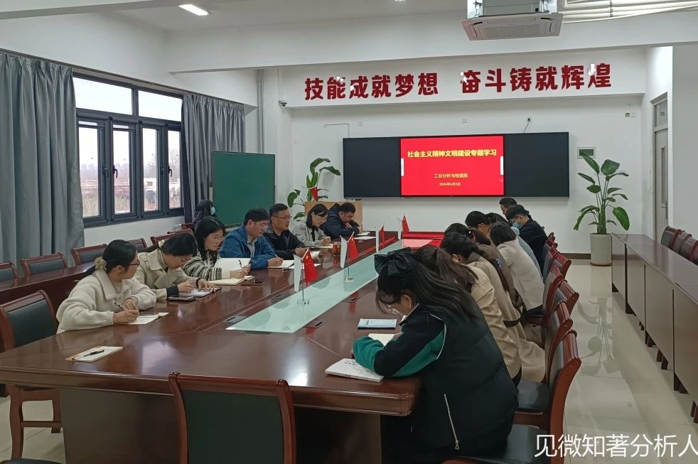 会议分三阶段进行。首先,全体教职工开展“社会主义精神文明建设专题学习”,工业分析与检测系党支部宣传委员陈雨雁带领大家认真学习《习近平关于社会主义精神文明建设论述摘编》精神和《枣庄市文明行为促进条例》。
