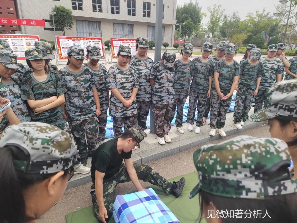 个别因疲惫而想退缩,因想家而落泪低沉的同学,在班主任老师和教官的安抚、鼓励与陪伴下,很快又振奋精神,重新投入到训练中去。