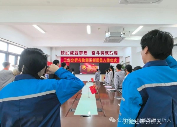 为传承五四薪火,凝聚青春力量,引导青年学生坚定理想信念、勇担时代使命,12月25日下午13:30,工业分析与检测系在山东化工技师学院高铁新区校区分析楼A323会议室隆重举行2025年度新团员入团仪式。系党支部书记刘建成、系主任杨明明、副主任白磊磊等领导老师,86名新发展团员及优秀团员代表共同参与,仪式由团总支副书记王伦主持。