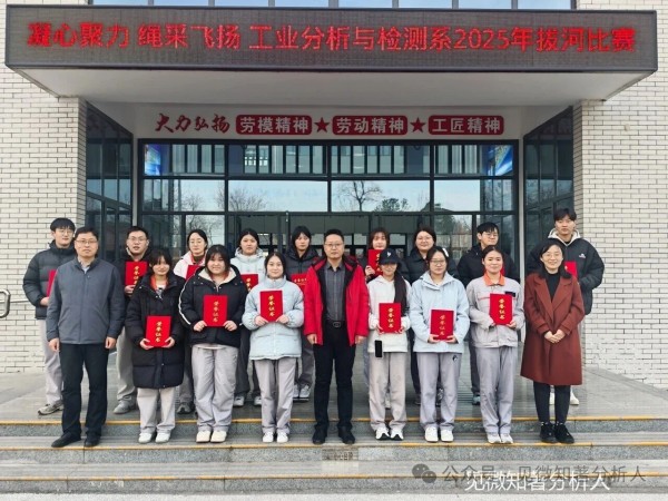 为丰富校园文化生活,增强学生体质,培养团队协作能力与拼搏精神,工业分析与检测系于2025年12月9日下午,在分析楼前举办2025年度“凝心聚力·绳采飞扬”拔河比赛决赛及颁奖仪式。本次活动吸引了系内各年级、各班级的踊跃参与,现场气氛热烈,充分展现了我系学子昂扬向上的精神风貌。