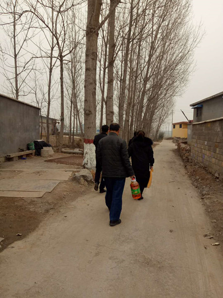 在贫困生家中,系部领导和教师与学生家长们亲切交谈,仔细询问了学生的家庭情况,指导学生合理安排寒假作息,鼓励学生克服困难、自强不息、刻苦学习,争取取得优异的成绩,并给他们送上了节日的慰问品米、面、油和新春的祝福。在走访小李的家庭中,我们了解到该家庭上学的孩子有三个,只靠父亲一人赚钱养家,上面还有一个患重病的老母亲,最近父亲又生病了,家里正在愁过年的问题,父亲在讲到正在上高三的二女儿时,说孩子穿着破烂的棉袄,每天吃饭只靠三个馒头和一点咸菜,但是面对困难孩子表现的异常坚强,每个月200元的生活费都花不了并且还有结余,说的老父亲都流下了眼泪。我们的走访就是雪中送炭,学生父亲握着蒋书记的手久久不愿放下。