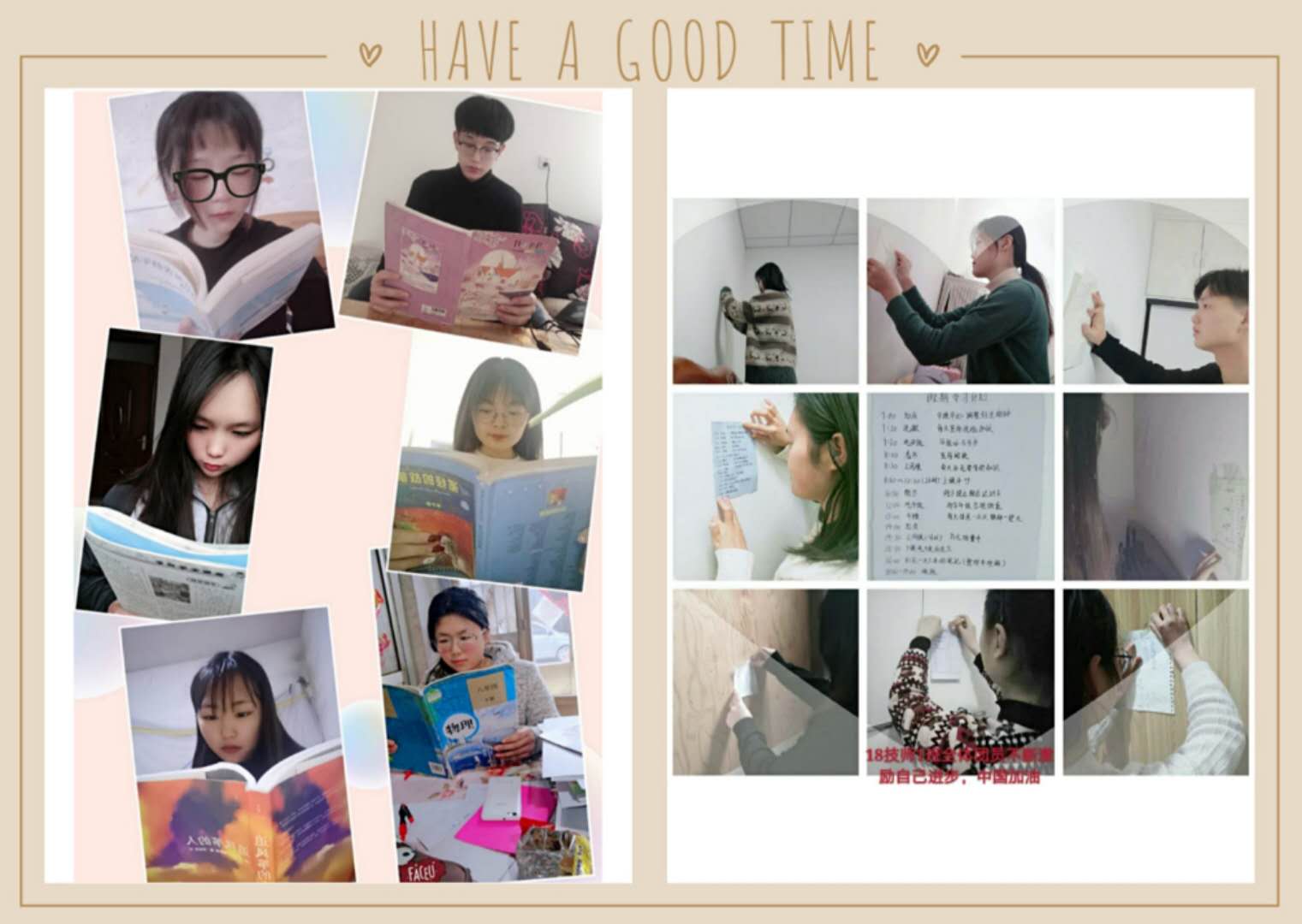 第三部分为“温故知新,督学防疫”。 一年之计,在于春,督促同学们莫负花期,进行“每日阅读学习打卡”和 “假期学习我计划”活动活动,除了学院开设的网络教学学习外,每位同学都自选一本有意义的书籍进行每天阅读1小时打卡活动,并把自己阅读的照片发到班级群里,让同学们互相监督,互相学习,使学生成为对自己负责的智慧的“潜修者”。