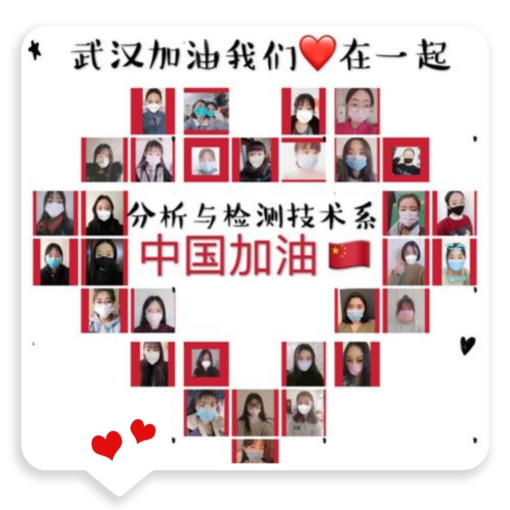 各班同学们组织拍摄了“为武汉加油、为中国加油”的助力照片和小视频,把满满的爱和祝福送给了武汉,送给了湖北,送给所有为战胜疫情而付出的人们。