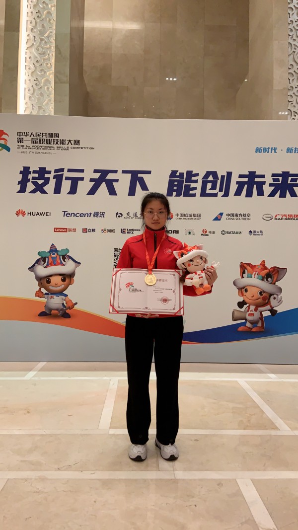 2020年12月13日,我系学生项东雪荣获中华人民共和国第一届职业技能大赛冠军!这个捷报从广州传来之后,轰动了整个学校。项东雪同学终于实现了自己的梦想,靠着世界技能大赛又近了一步!可喜可贺!