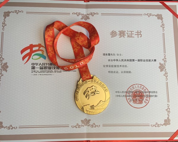 项东雪,2000年9月出生,山东省淄博人,现就读于山东化工技师学院。入校后凭借优异的成绩入选到学院竞赛班。在校期间,该生代表学院参加第九届山东省大学生科技节工业分析与检验技能大赛,获得个人三等奖,团体二等奖;参加山东省“技能兴鲁”职业技能大赛——第十届山东省化工行业职业技能大赛化学检验员赛项,获得学生组第一名、团体一等奖;在第45届世界技能大赛化学实验室技术项目山东省选拔赛中获第二名。在经过一系列赛事后,项东雪查缺补漏,刻苦训练,不断攻克技术难点、强化自身优势、提高综合技能水平,在第46届世界技能大赛化学实验室技术项目山东省选拔赛一举夺魁,以总分第一名的成绩进入山东省集训队,并在一次次集训考核中始终占据领先优势,最终获得了代表山东省参加第46届世界技能大赛化学实验室技术项目国家选拔赛的入场券。功夫不负有心人,项东雪同学终于展示了自己的专业能力!