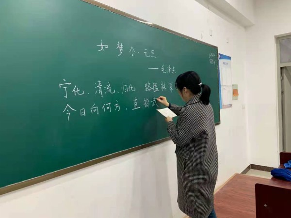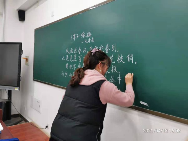 此次比赛以书写“毛泽东诗词”为主,要求全系任职教师规定时间内,在指定黑板上进行书写,力求做到书写规范,结构合理,布局美观。教师在书写时要做到笔法有度,笔画流畅,笔意隽秀,章法自然,注重实用性与艺术性的完美统一。