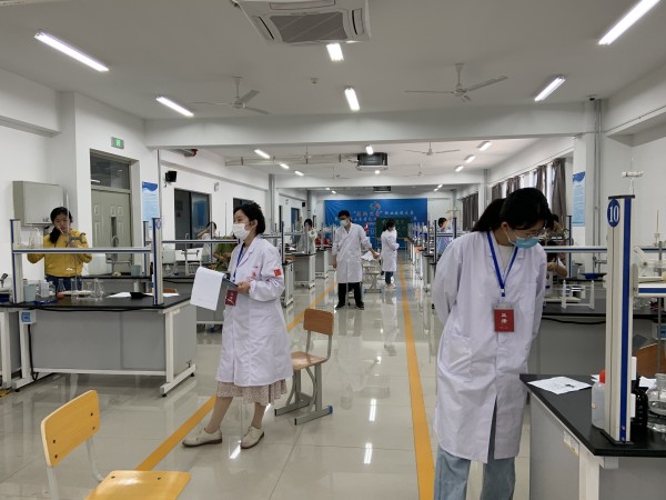 该鉴定考试全程由李华健老师负责,包括考场布置、溶液配制等等。为确保鉴定考试工作正常进行,李老师还从我系大赛班选出三名同学负责现场的溶液补给。鉴定期间,各工作人员积极配合、各负其责,保证了整个考试过程井然有序。