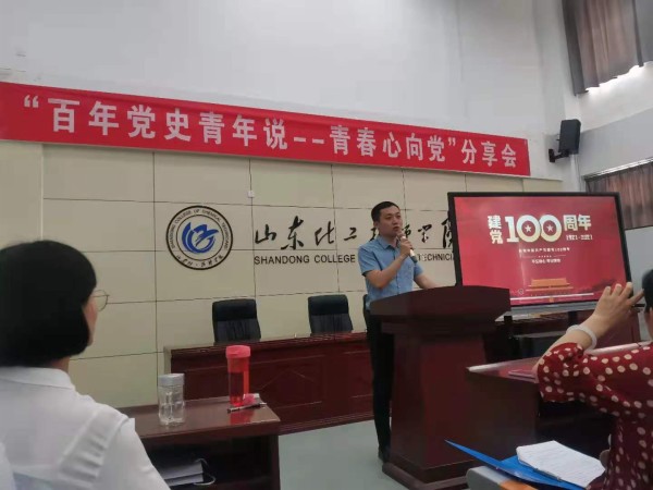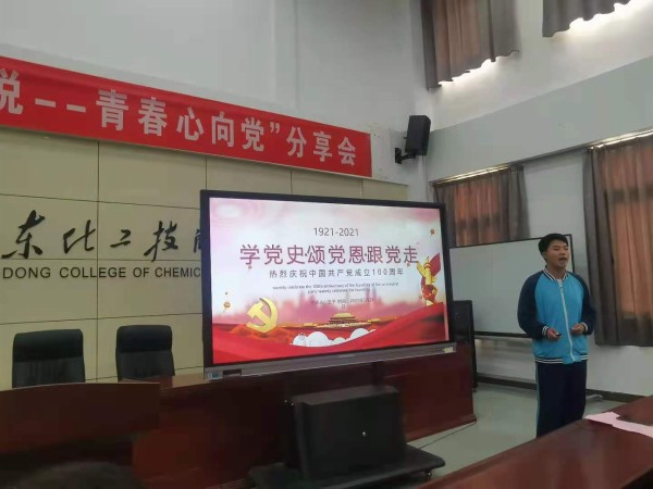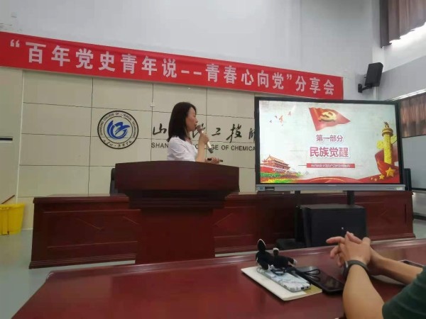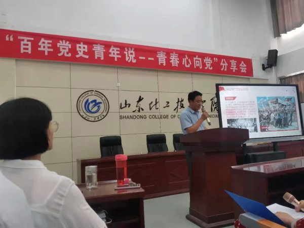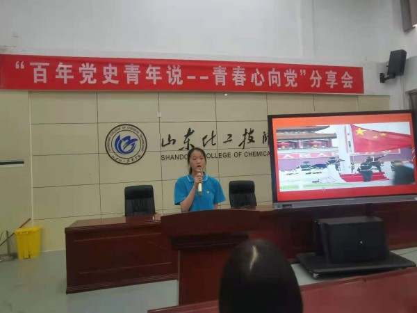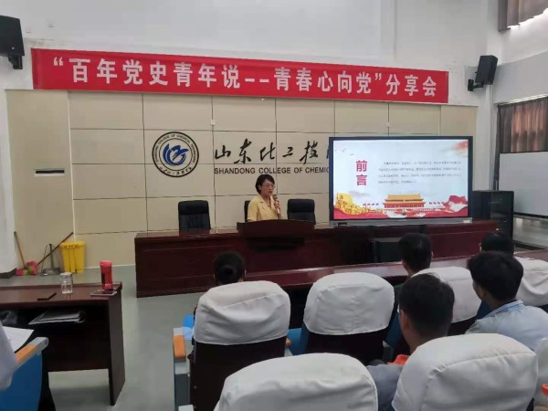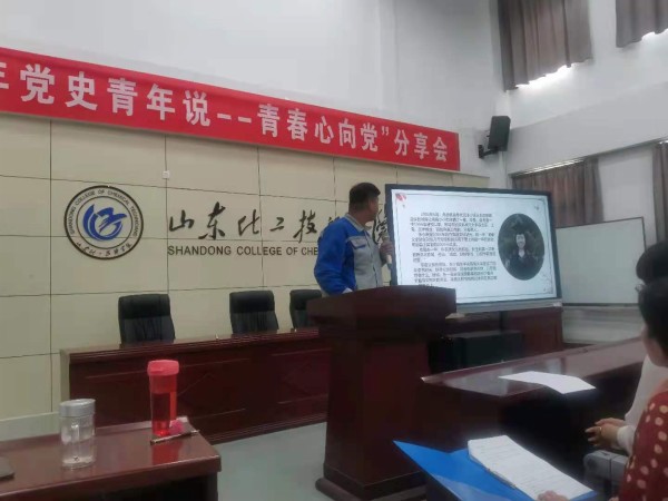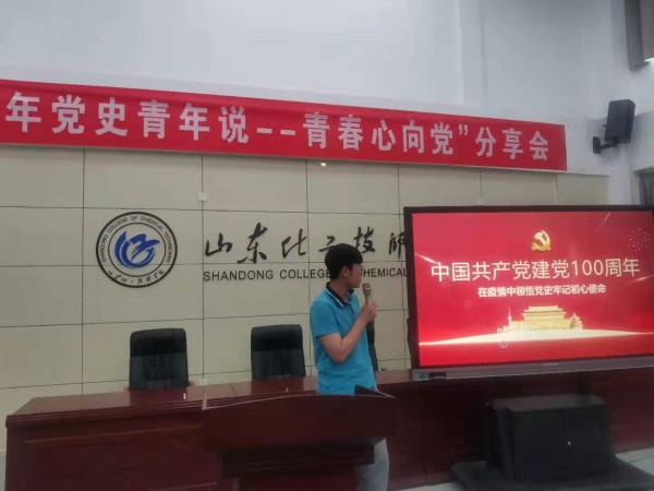 为庆祝中国共产党成立100周年,深入贯彻党史学习教育动员大会精神,在全校青年学生中深入开展学习党的历史,坚定理想信念,激发爱党爱国情怀,鼓励青年学生为实现“两个一百年”奋斗目标、实现中华民族伟大复兴的中国梦贡献青春智慧和力量,结合我校实际,由山东化工技师学院团委主办,工业分析与检测系团总支承办的“百年党史青年说--青春心向党分享会”于2021年6月25日举行。